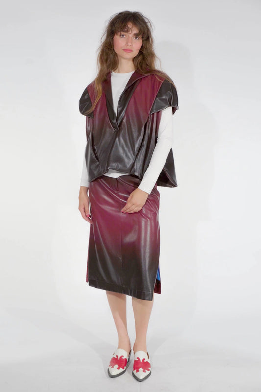 ASIL LEATHER MIDI SKIRT - BROWN OMBRE