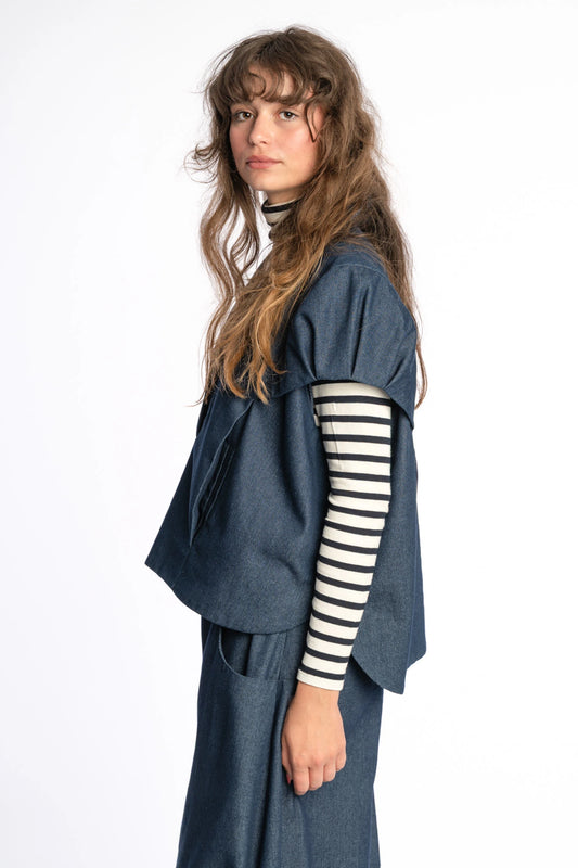 ALEX WIDE LEG DRAPED DENIM PANTS - INDIGO