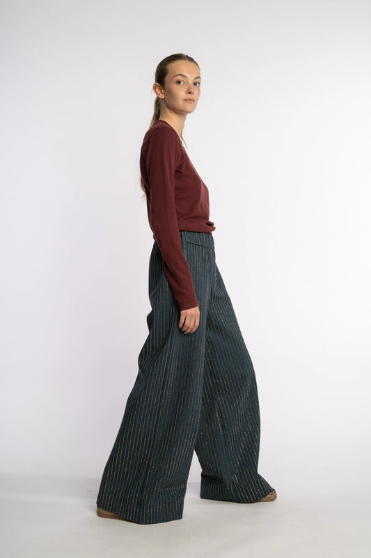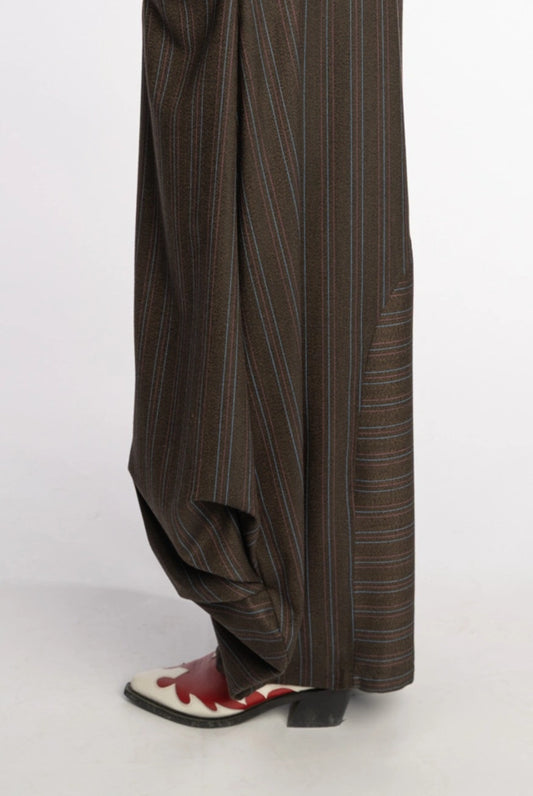 ALEX WIDE LEG BALLOON PANTS - BROWN STRIPES